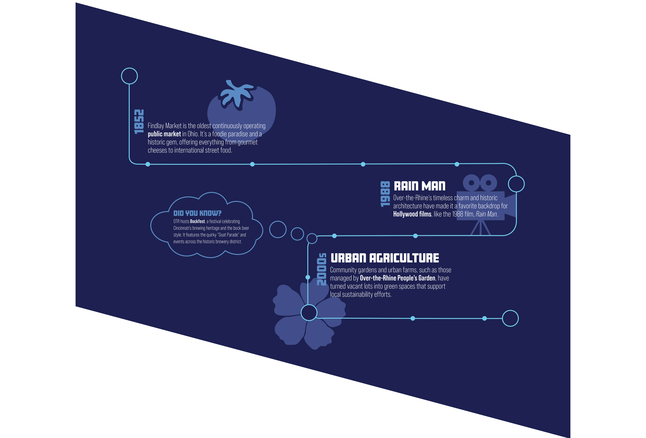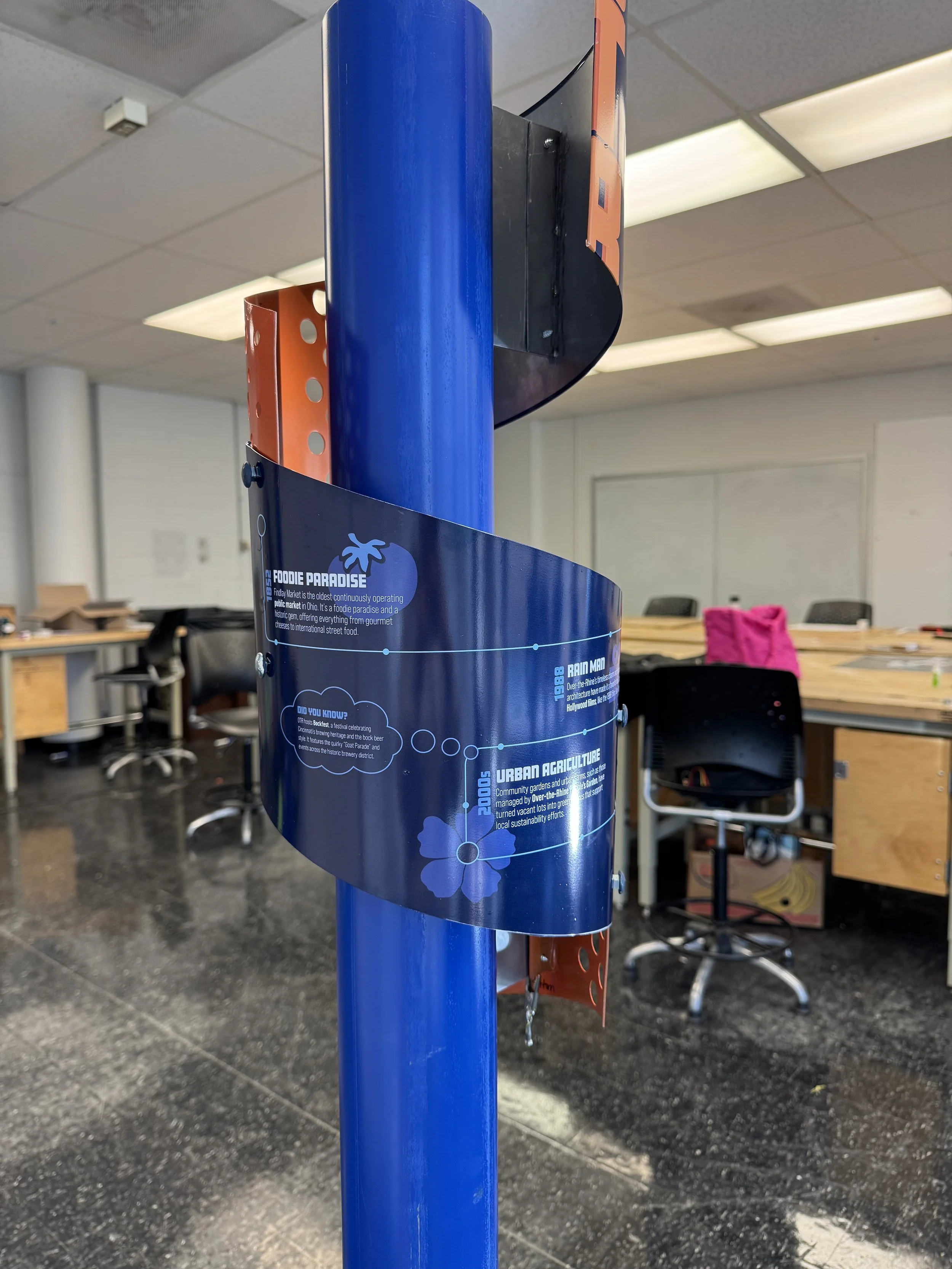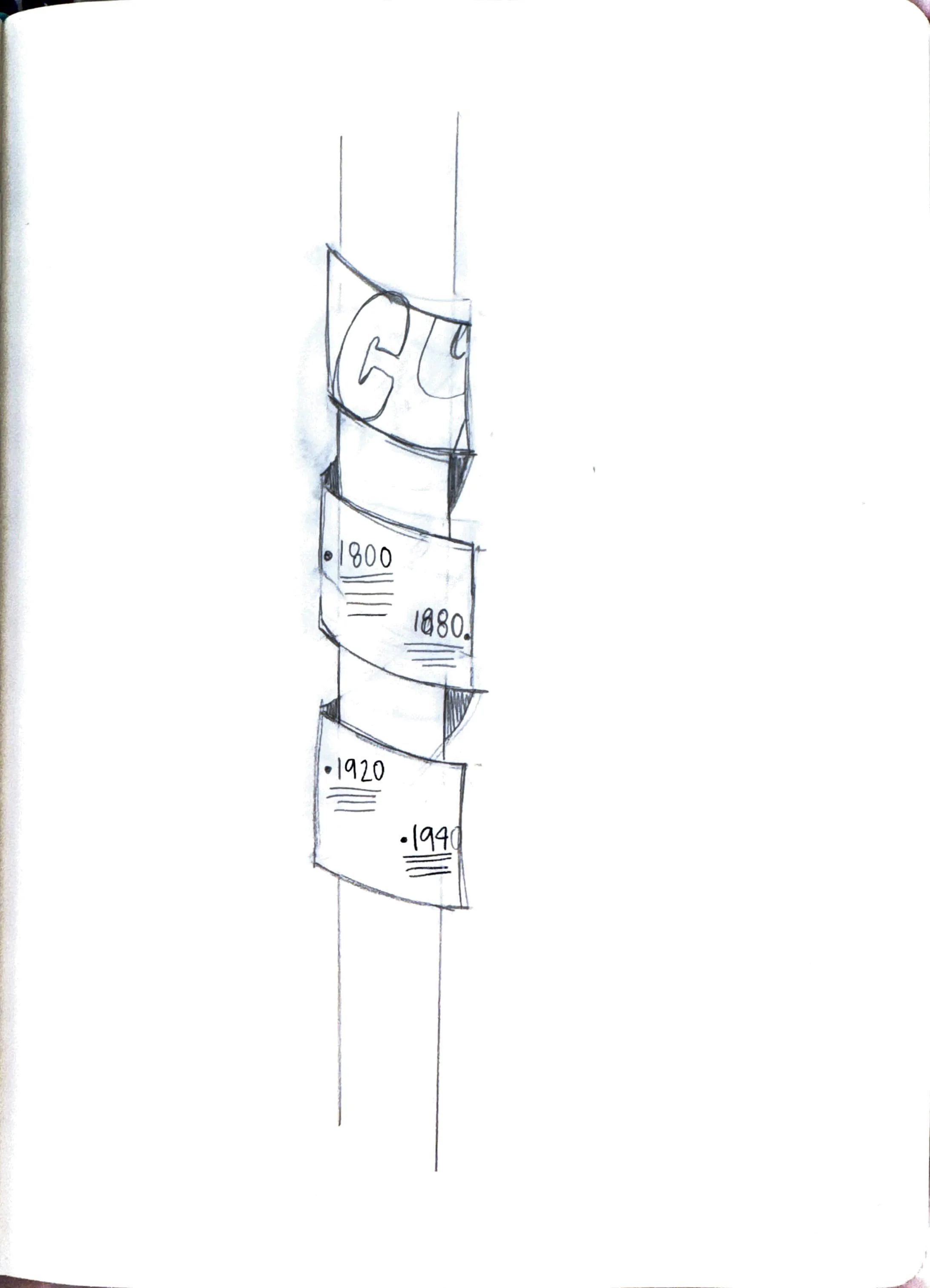 My concept is a historical timeline graphic that visually narrates the evolution of the neighborhood's identity, through a helix shape. It highlights key events and milestones to celebrate its rich history and foster community pride.